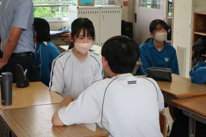 「1分間スピーチ」に取り組んだ今回のポイントは「うなずいて聴く」で、「夏休みに楽しみにしていること」などをテーマに、お互いのスピーチを聞きました。