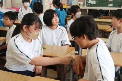 「1分間スピーチ」に取り組んだ今回のポイントは「うなずいて聴く」で、「夏休みに楽しみにしていること」などをテーマに、お互いのスピーチを聞きました。