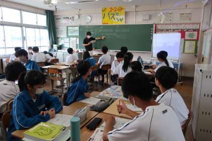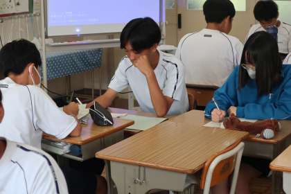 「一次関数を学ぼう」をテーマに、表から規則的な増減を見抜くなどの基礎を学んでいました。