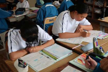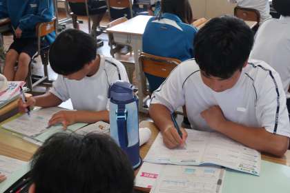 「一次関数を学ぼう」をテーマに、表から規則的な増減を見抜くなどの基礎を学んでいました。