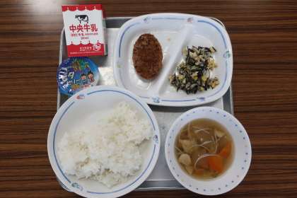 天の川汁、七夕サラダ、ハンバーグのおろしソースかけ、ごはん、星型パインゼリー、牛乳 でした。