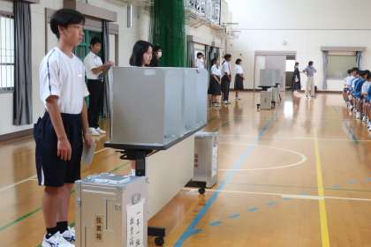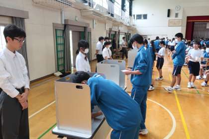 投票する側の生徒の参加する態度の真剣そのもの。高岡中学校の活性化に向けて、動き始めました。