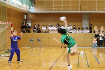 写真は、豊田市運動公園体育館で行われた女子ハンドボール部の大会の様子です。