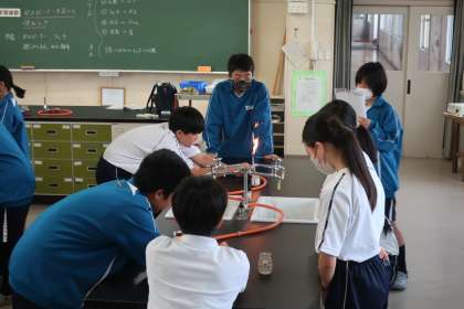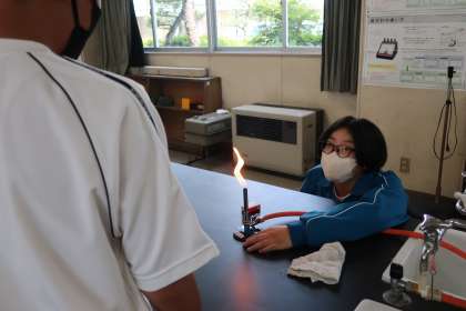今後の実験で使用するガスバーナーの使い方について、手順はもちろん、安全を意識しながら学習していました。
