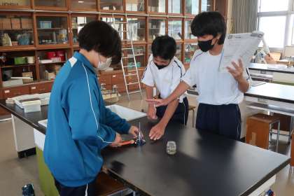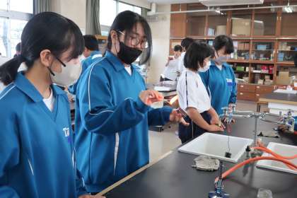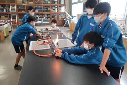 今後の実験で使用するガスバーナーの使い方について、手順はもちろん、安全を意識しながら学習していました。