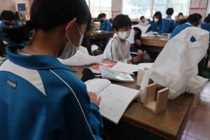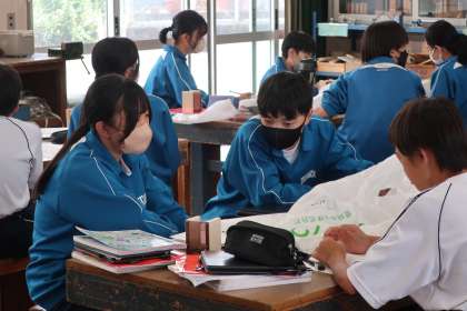 木製品づくりの活動を振り返り、丈夫に組み立てるために意識してきたことをまとめていました。