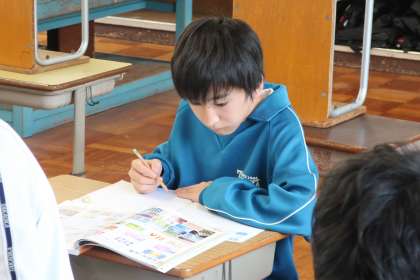 「構成の効果を理解しよう」をテーマに、シンメトリー、グラデーション、リピテーション、コントラストなど、様々なレイアウトのパターンを学んでいました。
