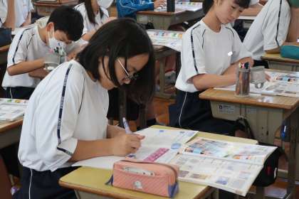 「構成の効果を理解しよう」をテーマに、シンメトリー、グラデーション、リピテーション、コントラストなど、様々なレイアウトのパターンを学んでいました。