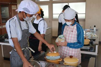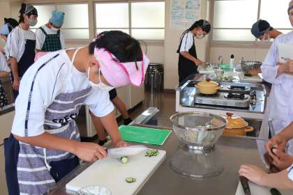 「きゅうりを7種類に切ろう」をテーマに、包丁の使い方のテストが実施されていました。