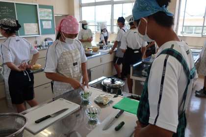 「きゅうりを7種類に切ろう」をテーマに、包丁の使い方のテストが実施されていました。