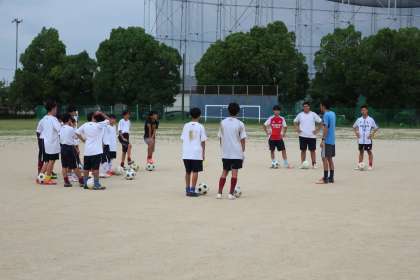 新チームになり、体力づくりのトレーニングメニューにしっかり取り組んでから、ボールを使った練習メニューに移っていました。