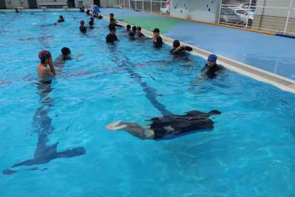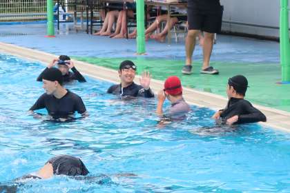 間もなく中学校生活最後の水泳の授業を迎えます。仲間とともに練習してきた成果を発揮していました。