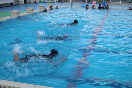 間もなく中学校生活最後の水泳の授業を迎えます。仲間とともに練習してきた成果を発揮していました。