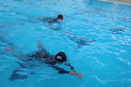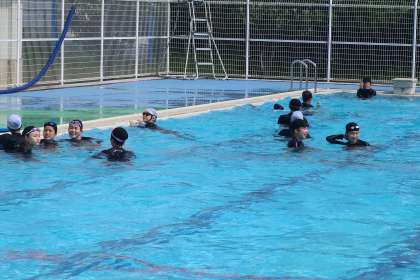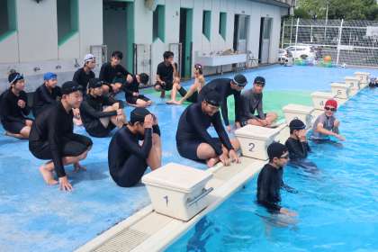 間もなく中学校生活最後の水泳の授業を迎えます。仲間とともに練習してきた成果を発揮していました。