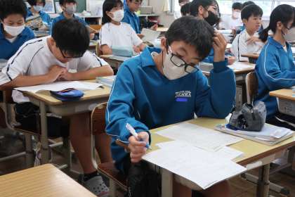 先日取り組んだ単元のまとめのプリントが返却され、間違えてしまった問題や理解が自不十分だと思った問題の解き直しに取り組んでいました。