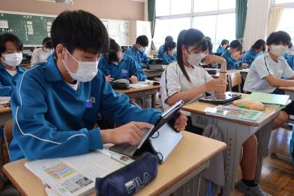 7/15 3-1 生活をより豊かに 3 公開日 2025/07/15 更新日 2025/07/15 各学年から 3年1組の社会・公民分野の授業の様子です。 「3つの基本原理の中で、私たちの生活をより豊かなものにするのはどれか」をテーマに、各自の考えをまとめていました。