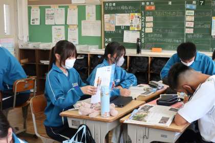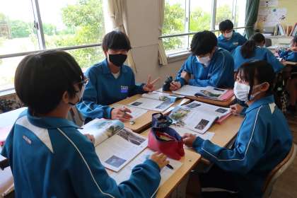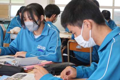長文の要約をまとめるため、重要な分を洗い出していきます。仲間と考えを出し合いながら進めていました。