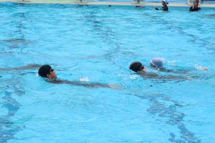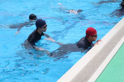 泳法の検定試験に向け、仲間と一生懸命練習していました。
