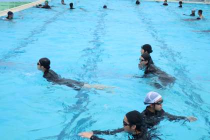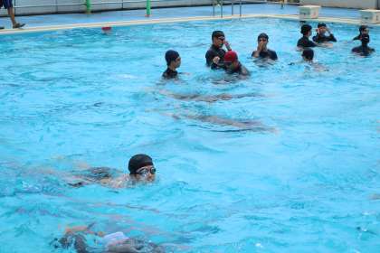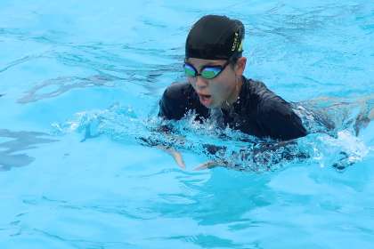 泳法の検定試験に向け、仲間と一生懸命練習していました。