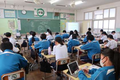 3年5組の社会・公民分野の授業の様子です。