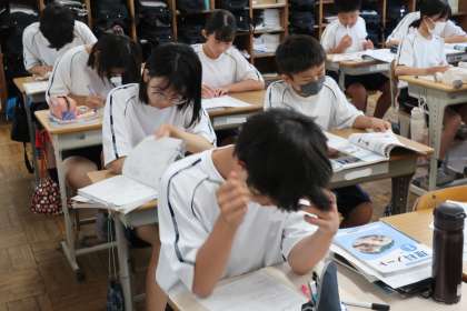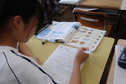 中学生になって初めて迎える夏休み。その間の家庭学習を充実させるため、これまで学習した内容の総復習に取り組んでいました。