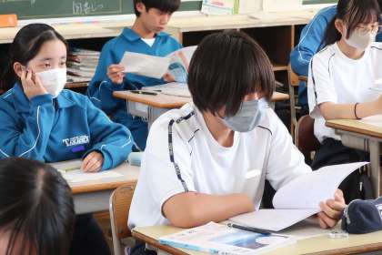 「遺伝の規則性と遺伝子」についての学習で、様々なパターンの問題を必死に考えていました。