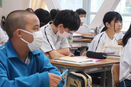 ALTとのコミュニケーション活動を行ったあと、充実した夏休みになるよう課題への取り組み方も伝授されていました。