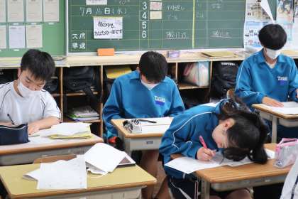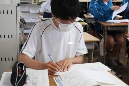 先日取り組んだ単元のまとめのプリントが返却され、夏休みを前にしっかりと見直していました。