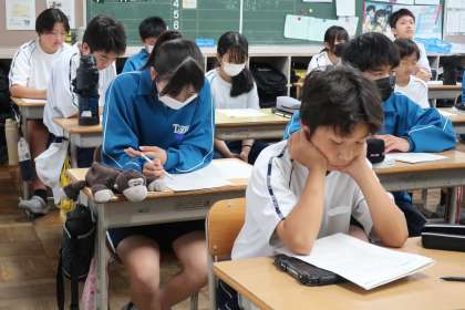 7/17 1-4 夏休みを充実させる 3 公開日 2025/07/17 更新日 2025/07/17 各学年から 今日は夏休み前最後の教科の授業日です。 1年1組の理科の授業の様子です。 中学生になって初めて迎える夏休み。その間の家庭学習を充実させるため、「科学研究」や「はてなレポート」への取り組み方をしっかり聴いていました。