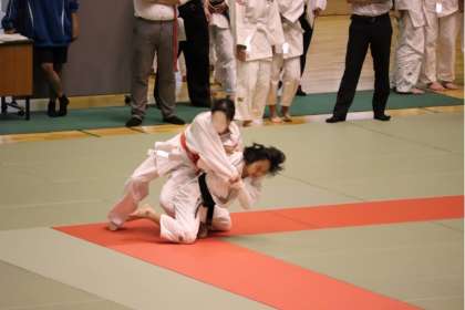 写真は、岡崎中央総合公園武道館で行われた柔道部の大会の様子です。