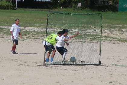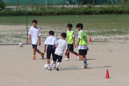 1年生が基礎メニューにしっかり取り組めるよう、2年生がサポートしながら活動しています。