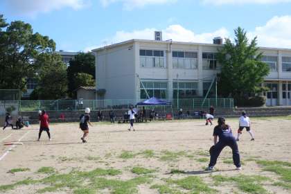 OGや保護者の方々、教職員の有志らが集まって開かれたこのセレモニー。生徒(現役+OG)チームと大人(保護者+教職員)チームでの対戦です。試合中、たくさんの笑顔を見ることができ、結果、生徒チームが勝利しました。