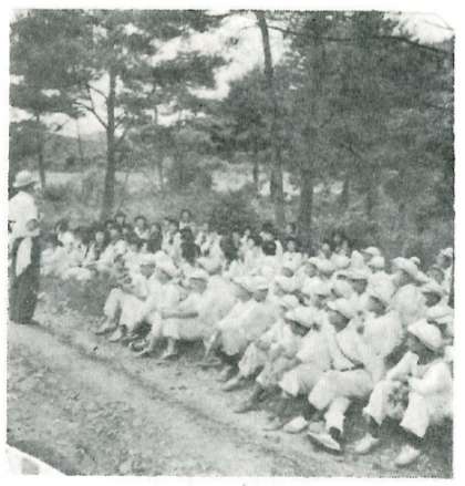 勇気を出し、町の職員を各地に派遣し、材料を集める。資材は手に入るも、修理をしてくれる職人はなし。父兄・先生・生徒が一体となり、毎日々々復旧作業に従事する。素人であるから復旧作業が進まず、約一か月もかかってしまった。一番心配であった事故も皆さんの熱烈なるご努力により無事故に終わり、共にやれやれであった。今思い出しても、よく永い間の作業にご協力が得られたものであると、一番の思い出であります。