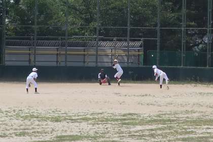 運動場の改修工事の関係で、学校での部活動も今週でひと区切り。守備・打撃練習をはじめ、ルールを確認しながらの場面練習など、しっかりと取り組んでいました。