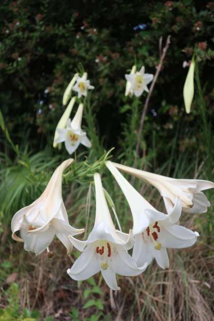 東門を出た国道沿いの側道には、自生するユリの花が咲き始めています。細い茎に似合わず、大きな花を咲かせるユリ。生い茂る周りの草たちに負けないよう、花全体の高さと大きさで存在感をアピールしているようです。