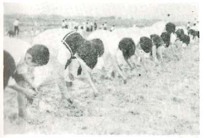 昭和37年の春、創立15周年記念行事を10日間行った。私の赴任3年目であった。産業展・展覧会・体育行事・学芸発表会・父兄会・講演会・遠足・記念式典・同窓会発表会等々と花火を打ち上げてのTSフェスティバルを展開した。いま “ゆとりの教育” が提唱されるが、今時の世知辛い教育界では、とても10日間連続興行はできることでない。全職員が総力を結集してよく事に当たった。私も40才代の油ののっていた時、教員生涯で思い出に残っている行事である。その時、同窓会を設立し、同窓会名簿を発刊したのだが、中野君などは何日も学校で徹夜をしたものであった。記念行事の寄付集めに町内はもちろん、町外へも自転車で走った。集まった浄財で、校旗・ピアノ・映写機・親子時計全教室・温室・記念碑等々各種の備品設置ができた。これも今ならとてもできない相談である。