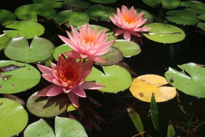 正門を入って右手にある池に蓮の花が咲いています。丁寧に管理され、メダカも元気に泳ぐ池は蓮の花が映えるよう、きれいな状況に保たれています。