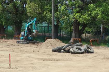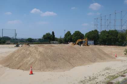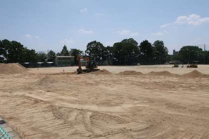 猛烈な暑さの中、今日も運動場の改修工事が行われました。