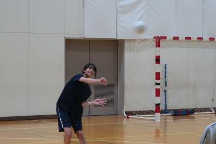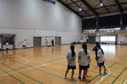正確なパスとキャッチの技能を習得するため、基礎メニューに繰り返し取り組んでいました。