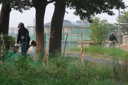 辺りが明るくなる頃から7時までの約1時間半、校内で作業を行っていただきました。