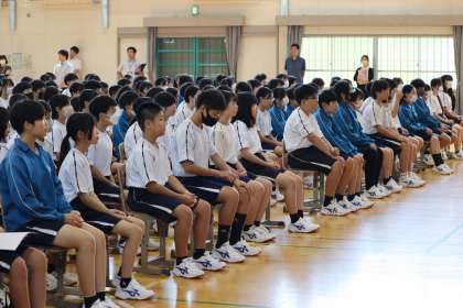 本日1時間目に実施された「夏季休業明け全校集会」の様子です。