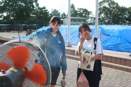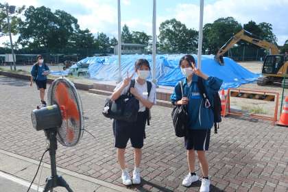 各学年の昇降口前には、ミスト付きの扇風機が設置され、つかの間の涼を感じています。学校生活を充実したものにしてほしいと思います。