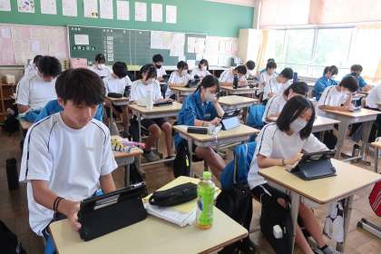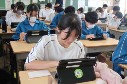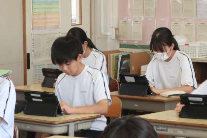 「Qubena(キュビナ)」という学習用タブレットに入っているAIが学習をサポートするアプリを使っての学習です。今後も授業や家庭学習のほかに、ちょっとした時間でも「さっと準備で、パパッとチャレンジ」できる学習アプリを効果的に活用していきたいと思います。