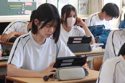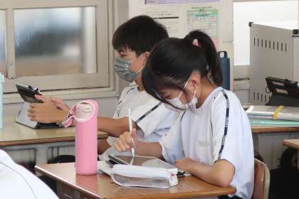 「Qubena(キュビナ)」という学習用タブレットに入っているAIが学習をサポートするアプリを使っての学習です。今後も授業や家庭学習のほかに、ちょっとした時間でも「さっと準備で、パパッとチャレンジ」できる学習アプリを効果的に活用していきたいと思います。