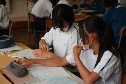 来週実施される定期テストに向けて、仲間と一緒に弱点の洗い出しと落ち着いて答えを導き出すための学習に取り組んでいました。