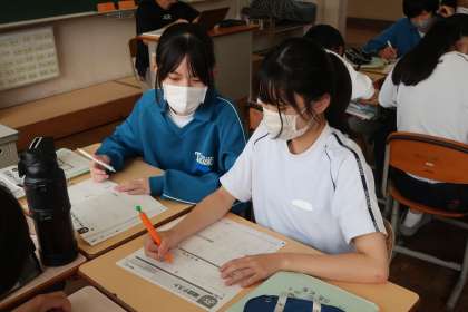 来週実施される定期テストに向けて、仲間と一緒に弱点の洗い出しと落ち着いて答えを導き出すための学習に取り組んでいました。