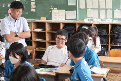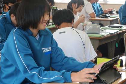 「なぜ第一次産業の割合は減少しているのか」をテーマの学習で、まずは自分の考えをもつため、しっかりと調べていました。