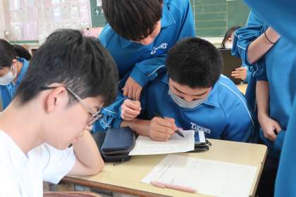 「私たちにできる動物支援の方法」について、意見・理由・結論すべてを英文で書き表していました。