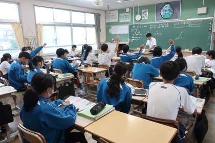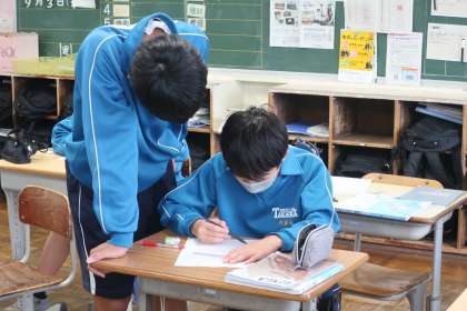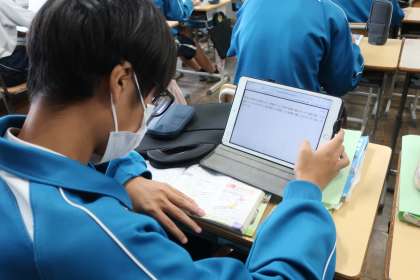「なぜ第一次産業の割合は減少しているのか」をテーマの学習で、まずは自分の考えをもつため、しっかりと調べていました。