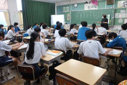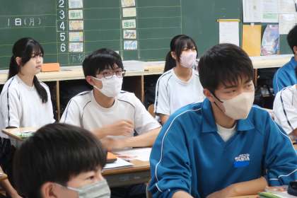3年4組の社会・公民分野の授業の様子です。